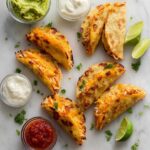 Pop the tray into the oven and bake the tacos for just 2 minutes – this short burst of heat is enough to start melting the cheese without drying the tortillas out. Then, carefully remove the tray, fold each tortilla in half around the filling, and gently press them to maintain the taco shape. Return them to the oven for another 12 to 14 minutes until the tortillas are crunchy on the outside and golden brown. This two-step bake creates the satisfying crunch and molten filling that make this Baked Chicken Tacos Recipe so addictive.