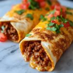 Lay out your large flour tortillas and scoop an even amount of the beef and cheese filling onto the center of each. Fold in the sides of the tortilla and roll tightly from one end to the other to fully enclose the filling, forming the classic burrito shape but destined for frying.
