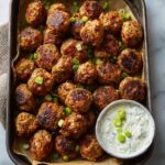 Top the meatballs generously with blue cheese crumbles, a drizzle of ranch dressing, and a sprinkle of chopped green onions. These garnishes add layers of creaminess, brightness, and a sharp kick, elevating every bite and making them even more irresistible.