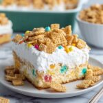 - Add Topping and Garnish: Once chilled, spread the whipped topping or homemade whipped cream evenly across the surface of the cake. Finish by sprinkling 1 cup of additional dry cereal on top for a crunchy, colorful garnish. Serve chilled and enjoy!