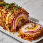 This Chicken Cordon Bleu Meatloaf is a delightful twist on classic meatloaf, incorporating tender ground chicken, savory Black Forest ham, and Swiss cheese rolled into a flavorful log. Topped with a buttery breadcrumb crust and served with a creamy Dijon Parmesan sauce, this dish offers a comforting and elegant meal perfect for family dinners.