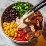 Elevate your Chipotle Chicken Bowl with Black Beans, Corn, & Creamy Sauce Recipe by adding extra garnishes like sliced avocado for creaminess, a wedge of lime for zest, or thinly sliced jalapeños if you love an extra layer of spice. Fresh cilantro and a few crumbled tortilla chips also add texture and freshness that make every bite exciting.