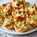 These Creamy Artichoke Dip Bites are a delightful appetizer featuring a rich blend of cream cheese, sour cream, and cheeses combined with tender artichoke hearts, all nestled in crispy phyllo pastry cups. Perfectly baked to golden perfection, they are an irresistible party snack or starter for any occasion.