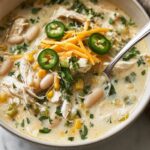 Serving your Creamy Crockpot White Chicken Chili Recipe in colorful bowls with layered toppings creates a beautiful, inviting presentation perfect for entertaining. Set up a chili bar with various garnishes and sides so everyone can customize their own bowl. You could also stuff the chili into baked potatoes or spoon it over nachos for a delicious twist.