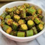 Once done, remove the okra and serve immediately for the best crispy texture. A squeeze of fresh lemon juice over the top adds a burst of freshness that balances the spices and elevates the whole experience.