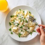This easy homemade Alfredo sauce recipe is a creamy, rich sauce made with butter, heavy cream, garlic, and Parmesan cheese. Perfect for drizzling over pasta, it combines simple ingredients to create a luxurious and flavorful dish in just 20 minutes.