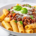 - Combine and serve: Toss the cooked pasta with the Bolognese sauce thoroughly. Serve hot, garnished with grated Parmesan cheese and chopped fresh parsley for added flavor and presentation.