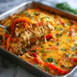 This Fajita Chicken Casserole is a comforting and flavorful dish that combines shredded chicken, instant rice, creamy soup, and a blend of Mexican spices and vegetables. Baked to perfection and topped with melted Mexican blend cheese, it’s an easy-to-make meal perfect for busy weeknights or casual gatherings.