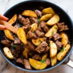 - Toss potatoes and steak together: Add the cooked potatoes back into the skillet with the steak bites. Gently toss everything to combine and heat through evenly. Season with additional salt and pepper if needed.