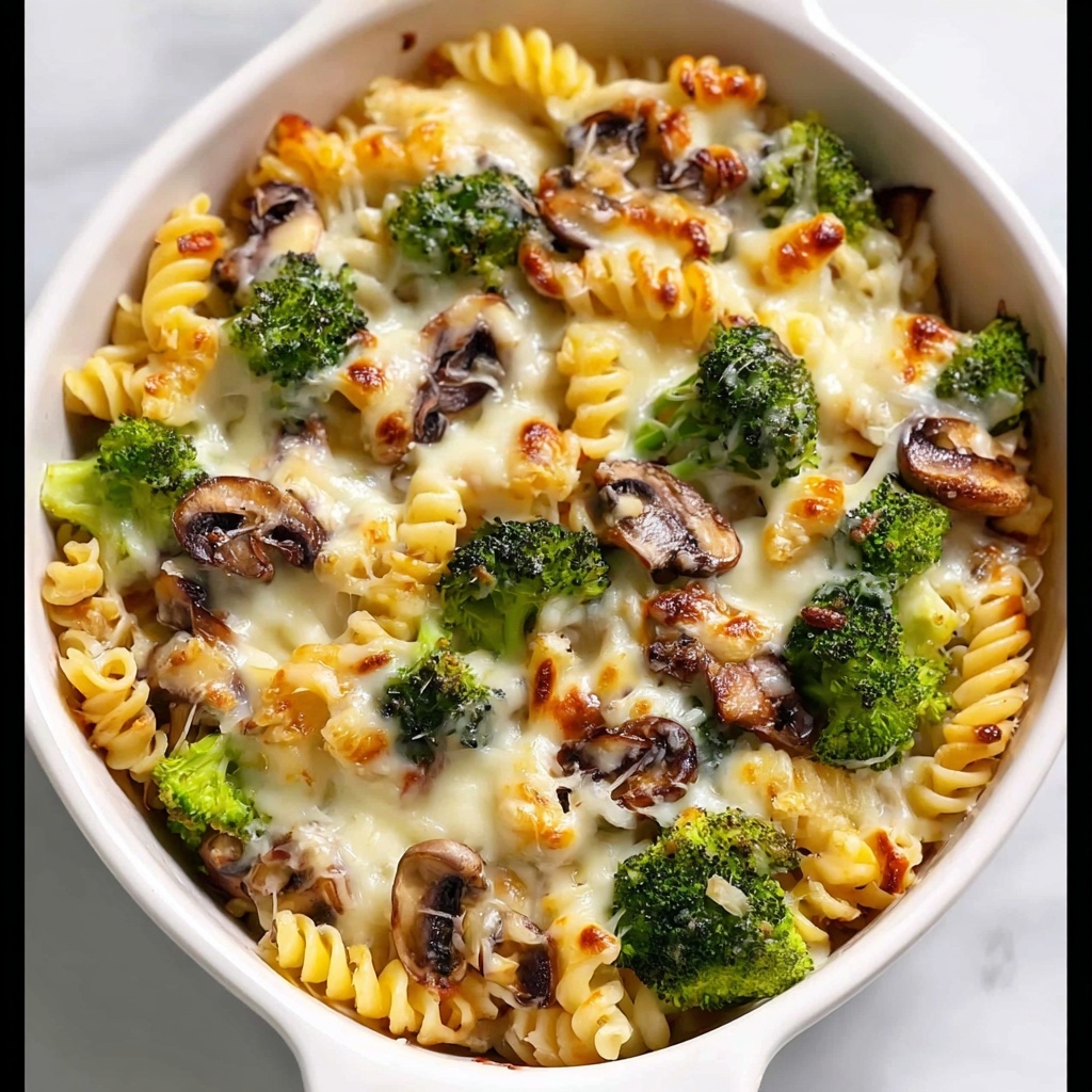 This Healthier Broccoli Chicken Casserole is a delicious and nutritious one-dish meal combining whole-wheat pasta, tender broccoli florets, sautéed mushrooms and onions, and shredded chicken all baked in a creamy cheese sauce. It offers a wholesome twist on classic comfort food by incorporating whole grains, plenty of veggies, and lean protein, making it perfect for family dinners or meal prepping.