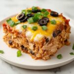 This Healthy Chicken Taco Casserole is a nutritious and flavorful dish perfect for a family meal. Combining sautéed vegetables, black beans, shredded chicken, and whole wheat tortillas, it layers wholesome ingredients with low-fat cheese and enchilada sauce, baked to golden perfection. Ready in just 40 minutes, this casserole offers a balanced and satisfying Mexican-inspired dinner that’s easy to prepare and serves six.