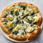 This pizza pairs beautifully with a crisp garden salad or a light lemon vinaigrette-dressed arugula salad. For something heartier, oven-roasted garlic cauliflower or a simple bowl of mixed olives complements the Mediterranean vibes of the artichokes and spinach perfectly.