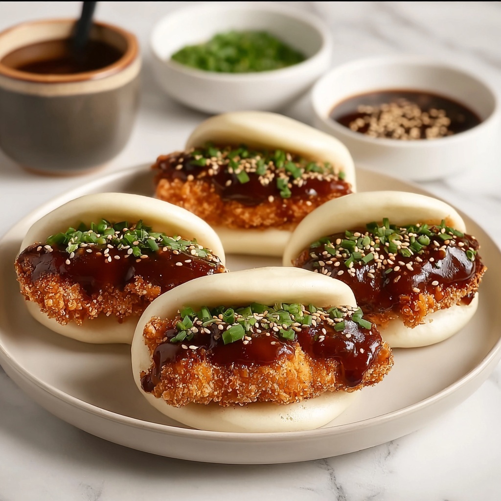 Adding garnishes can elevate the presentation and flavor profile of your Korean Fried Chicken Bao Buns. Sprinkle toasted sesame seeds atop for an extra nutty crunch or finely chopped scallions to introduce a fresh, mild oniony bite. If you like heat, a few thin slices of fresh chili or a drizzle of extra spicy sauce add a beautiful fiery touch.