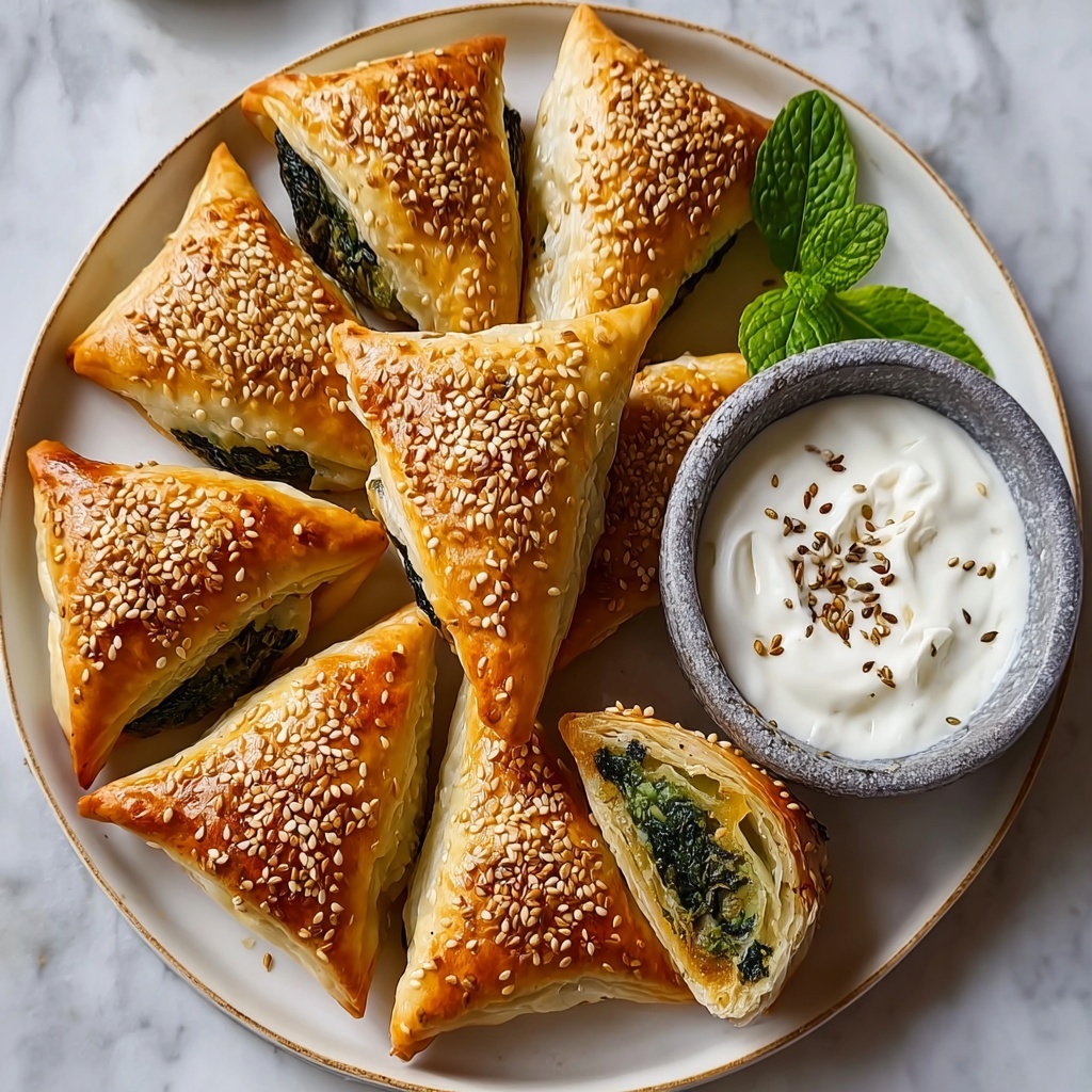 These savory pies are beautiful on their own, but adding a sprinkle of toasted sesame seeds or a dusting of sumac can provide a little extra flair. Fresh herbs like chopped parsley or mint served alongside bring a lovely pop of color and freshness.