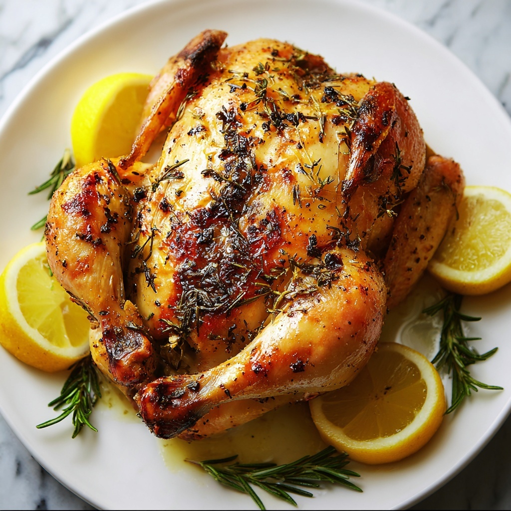 This Lemon Herb Roasted Chicken recipe features a whole chicken marinated in a vibrant blend of fresh lemon juice, garlic, and aromatic herbs, then roasted to juicy perfection. Ideal for a comforting family dinner, the recipe includes optional vegetables like carrots, potatoes, and onions, making it a complete, flavorful one-pan meal.