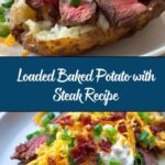A hearty and comforting loaded baked potato recipe topped with tender steak, melted cheddar cheese, sour cream, green onions, and crispy bacon. Perfect for a satisfying dinner that combines the classic flavors of steak and loaded potatoes.