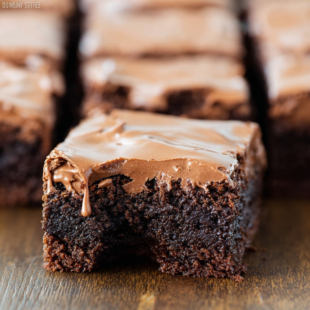 - Prepare Chocolate Frosting: While the brownies are still warming, beat together the softened butter, 2% milk, 1/4 cup cocoa powder, and powdered sugar until smooth and creamy.