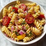 This vibrant Mexican Street Corn Pasta Salad combines the smoky flavors of charred corn with a creamy, zesty dressing for a refreshing and satisfying side dish or light meal. Featuring a colorful mix of corn, cherry tomatoes, red onion, and cilantro, tossed with tender pasta and a tangy chili-lime mayo dressing, it’s perfect for summer cookouts, potlucks, or any casual gathering.