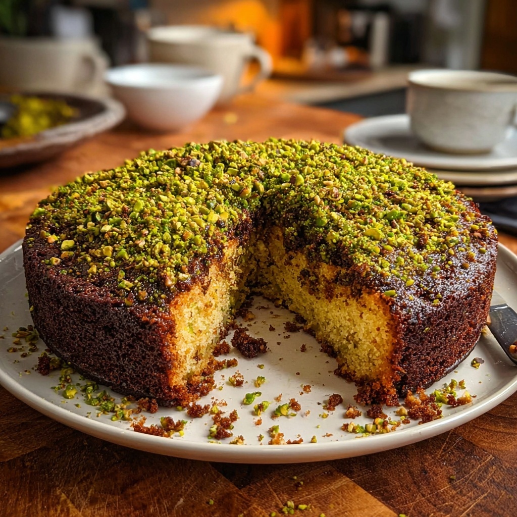 Want to impress guests? Serve individual slices on delicate dessert plates with a drizzle of honey or a spoonful of orange marmalade on the side. Alternatively, create mini versions of this cake in muffin tins and serve them as bite-sized treats at a party. The pistachio crust adds that perfect pop of texture no matter the presentation.