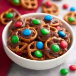 These Rolo Pretzels with M&M Candies are a delightful sweet and salty bite-sized treat perfect for parties, holiday gatherings, or anytime you crave a quick and easy snack. Mini pretzels are topped with melted Rolo caramel chocolates and finished with colorful M&M candies, creating a delightful combination of crunchy, chewy, and chocolatey flavors.