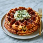 These savory cheddar chive waffles are a delicious twist on classic waffles, combining sharp cheddar cheese and fresh chives for a flavorful breakfast or brunch option. Crispy on the outside and tender on the inside, these waffles are packed with cheesy, garlicky goodness that pairs perfectly with a variety of toppings or sides.