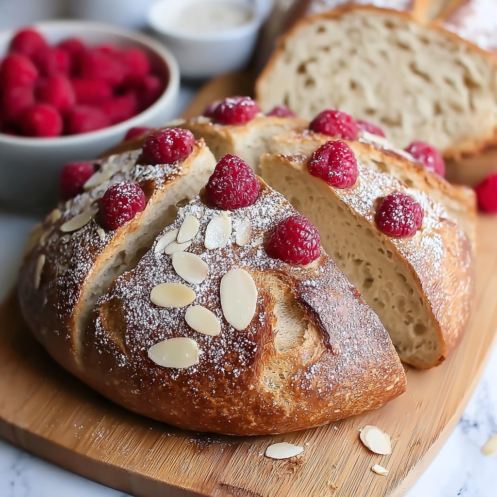 This Sourdough White Chocolate and Raspberry Bread combines the tangy depth of artisan sourdough with the sweet burst of fresh raspberries and creamy white chocolate chips, resulting in a unique and flavorful loaf perfect for breakfast or a special snack.