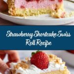 This Strawberry Shortcake Swiss Roll recipe features a light and fluffy vanilla sponge cake rolled with a luscious strawberry cream filling and topped with whipped cream and strawberry shortcake crumbs. The cake is made by baking a thin vanilla sponge, rolling it warm, then filling it with sweetened strawberry compote-infused whipped cream. The roll is chilled to set and finished with a delicate whipped cream topping and crunchy crumbs, making it a perfect fruity, creamy dessert for any occasion.