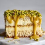 Before serving, sprinkle finely chopped pistachios evenly over the top. This finishing touch adds a delightful crunch and vibrant color contrast, making this Vegan Pistachio Tiramisu (Egg-Free, Dairy-Free, Nutty Delight) Recipe an irresistible showstopper.