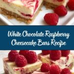 These White Chocolate Raspberry Cheesecake Bars combine a buttery graham cracker crust with a creamy white chocolate and cream cheese filling, swirled with vibrant raspberry puree. Baked to perfection and chilled for a refreshing finish, they make a delightful, elegant dessert perfect for any occasion.